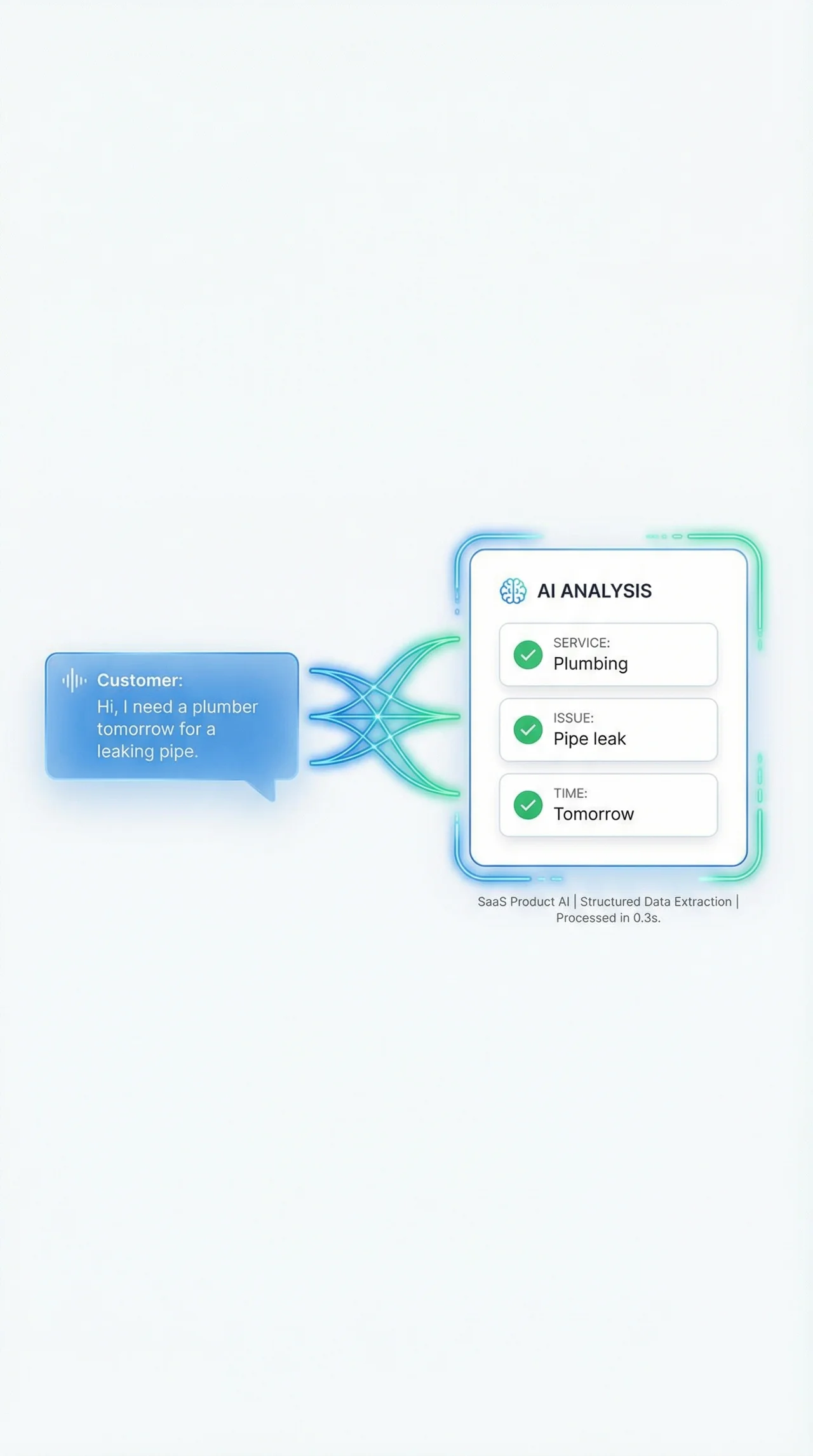 Step 2 – Understands the request: The AI listens to the customer and understands what they need using advanced natural language processing. It can identify the service requested, urgency, and relevant details such as location or preferred time.